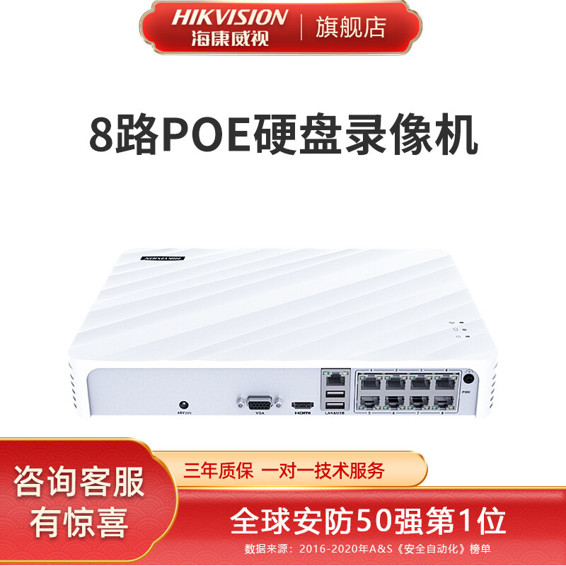 海康威视 监控录像机 硬盘录像机NVR主机4路8路带POE供电 DS-7108N-F1/8P 【8口POE•录像机】7108N-F1/8P 自营