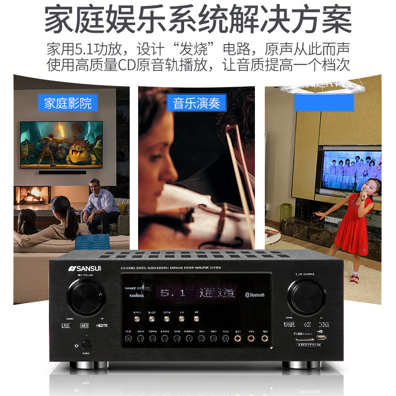 山水(SANSUI)DM-10A 家庭影院功放机 音响 音箱 5.1声道功放 大功率 支持蓝牙/USB 黑色 旗舰版 自营